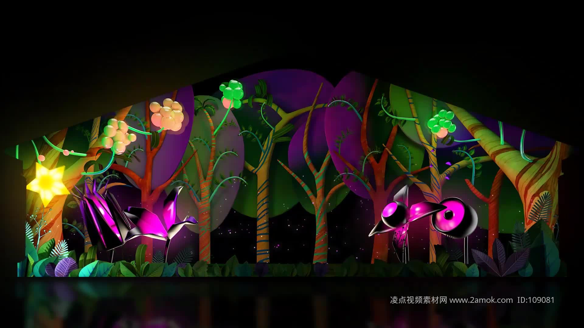 圣诞节儿童卡通3D全息投影3D户外投影舞台背景