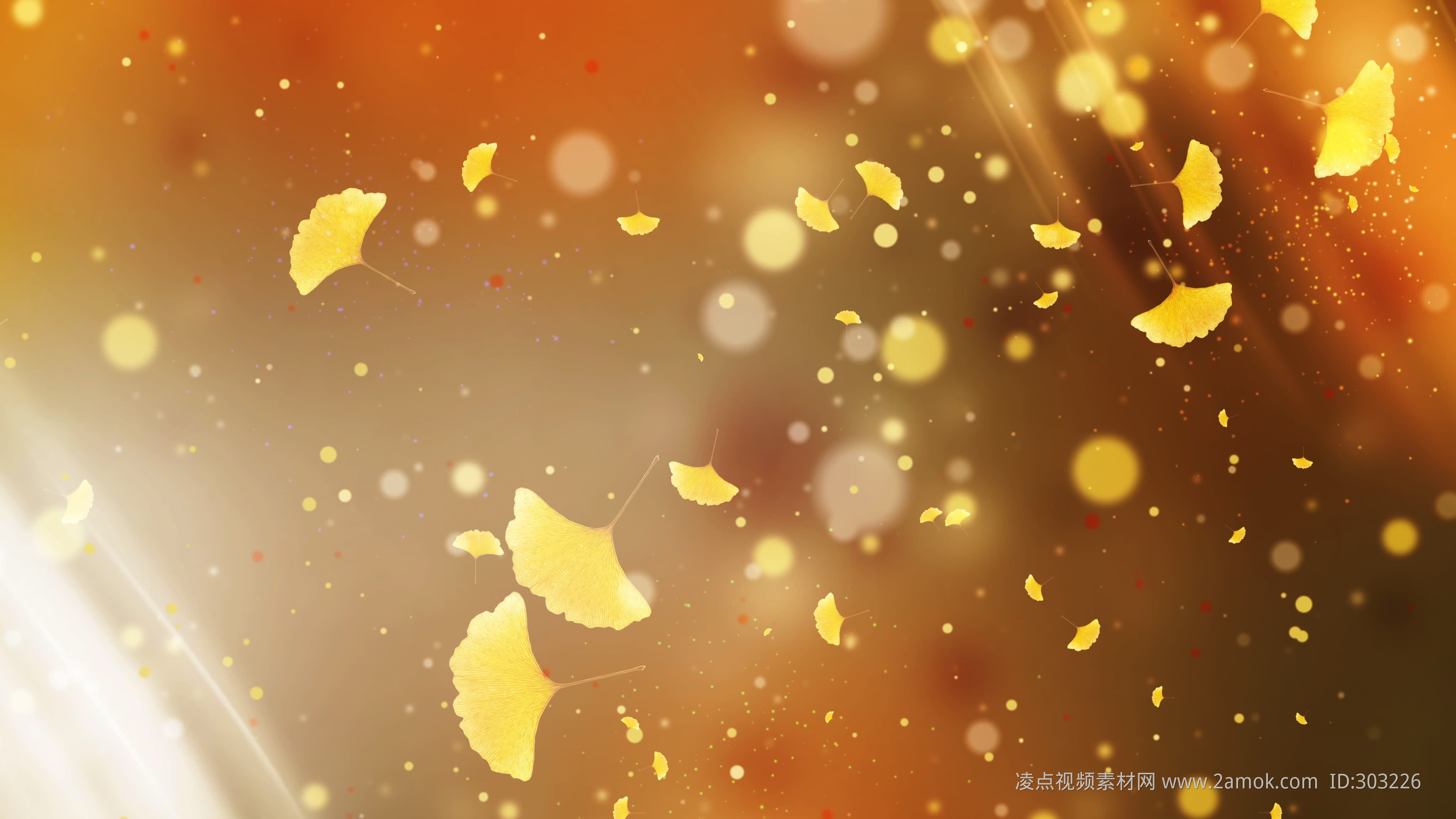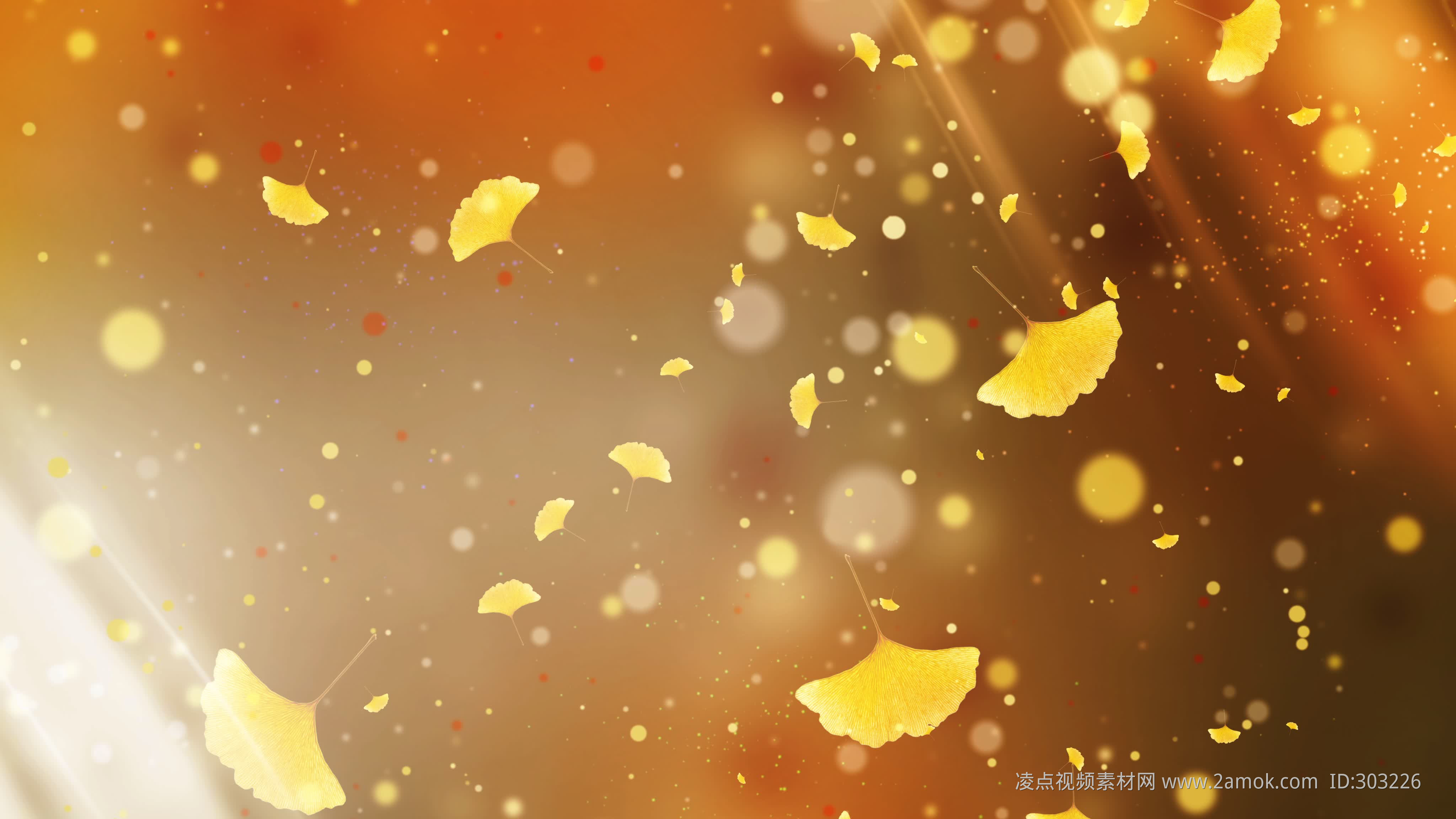 银杏 落叶 光斑 光漏 粒子 光线 唯美 梦幻 浪漫 舞台 背景 金黄 秋天 大屏幕 金秋 led