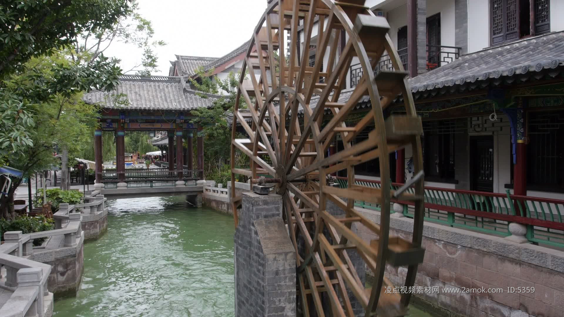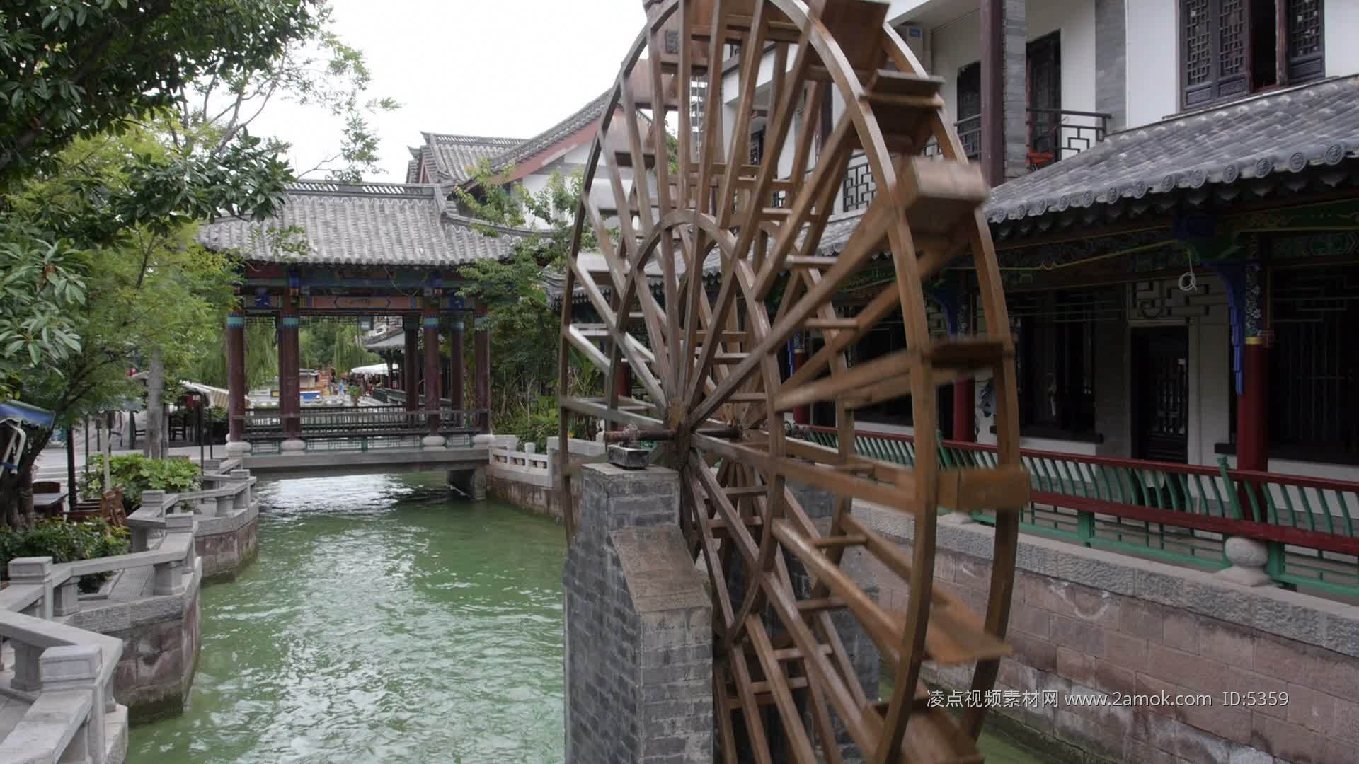 木制水车古代灌溉设施水车旋转合集