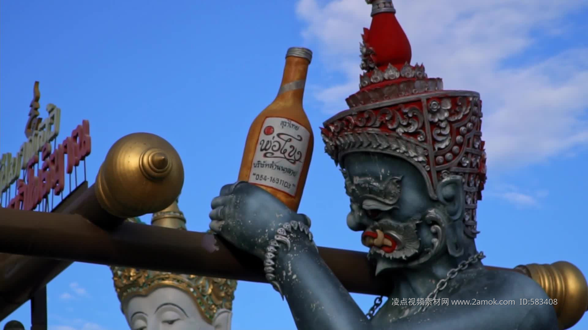 泰国北部大庙孔雀王庙寺庙佛教宗教佛像雕塑视频素材