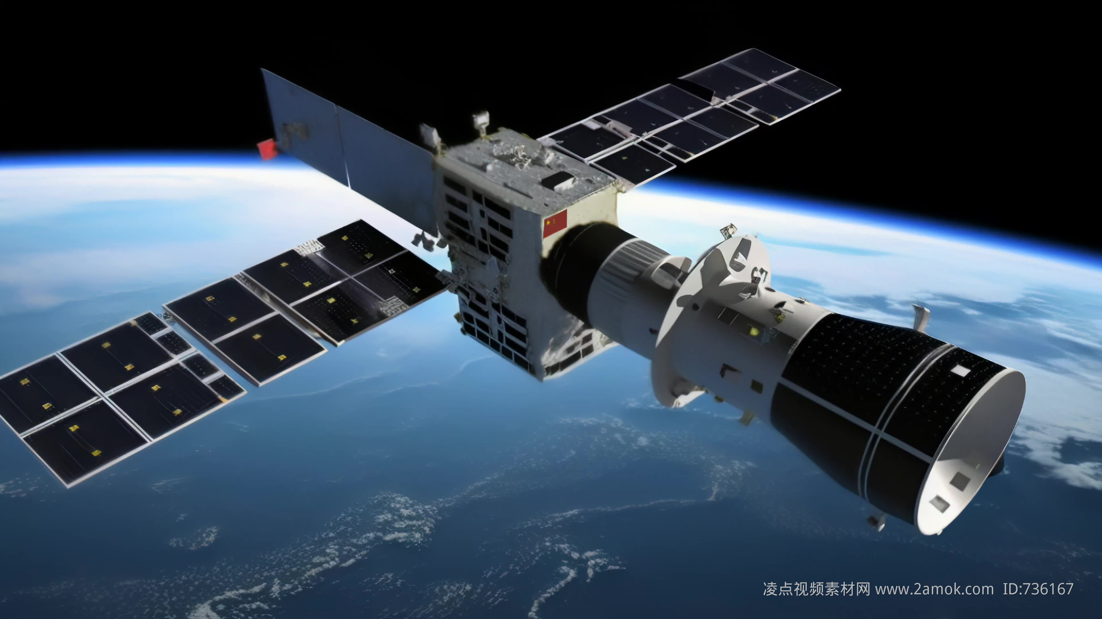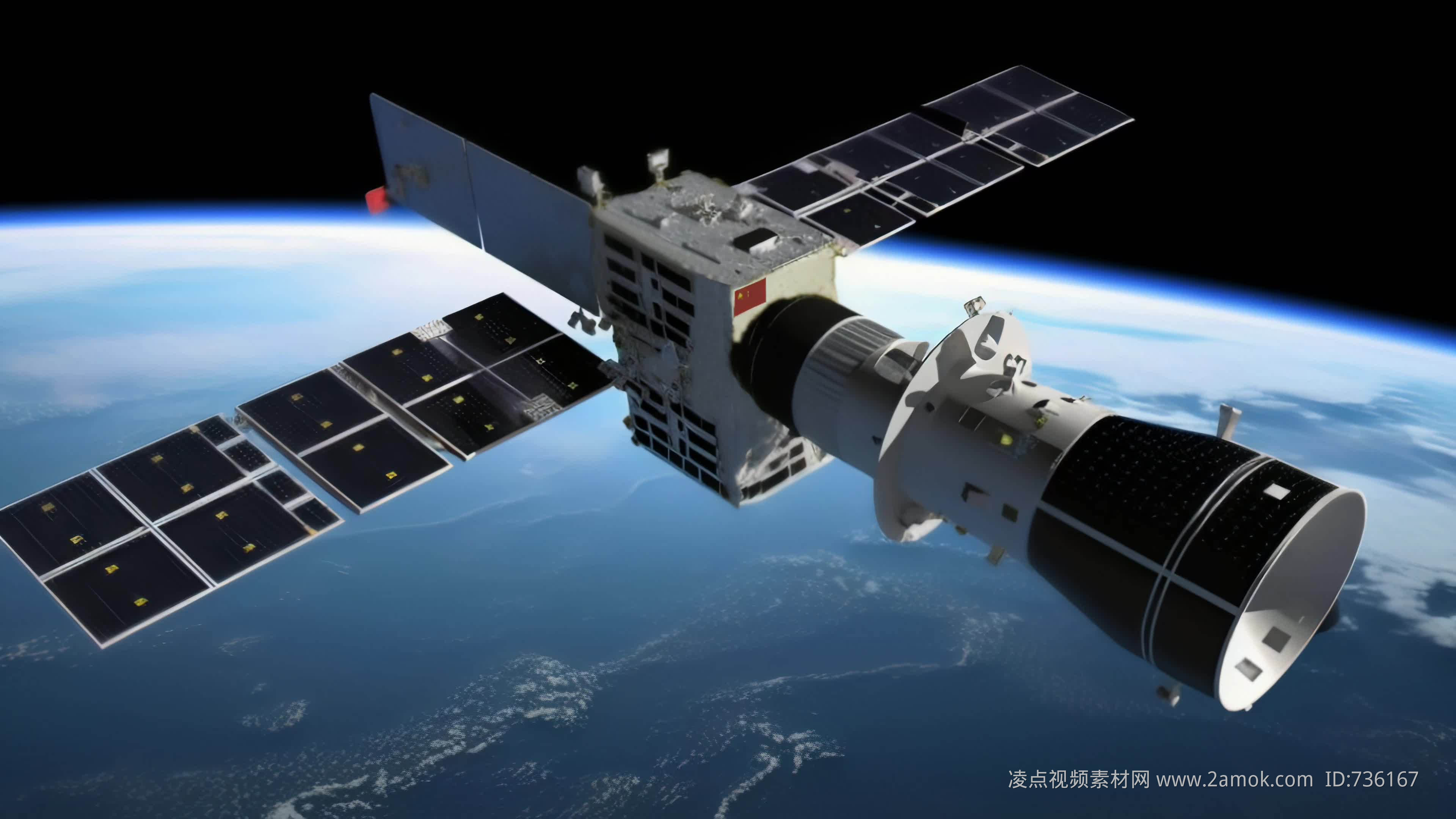 4k航天器在太空中绕地球轨道航行创意素材(舞台背景