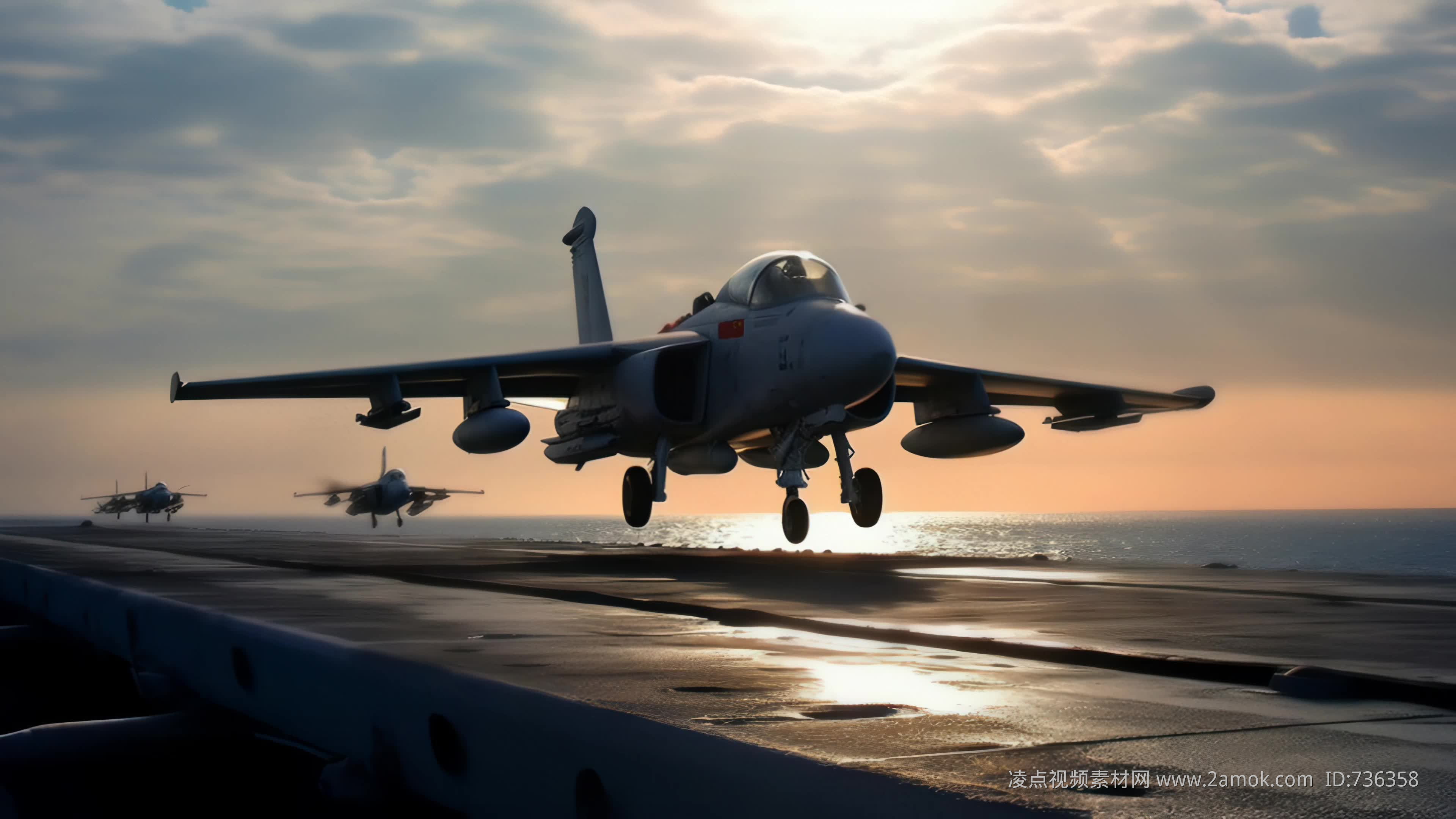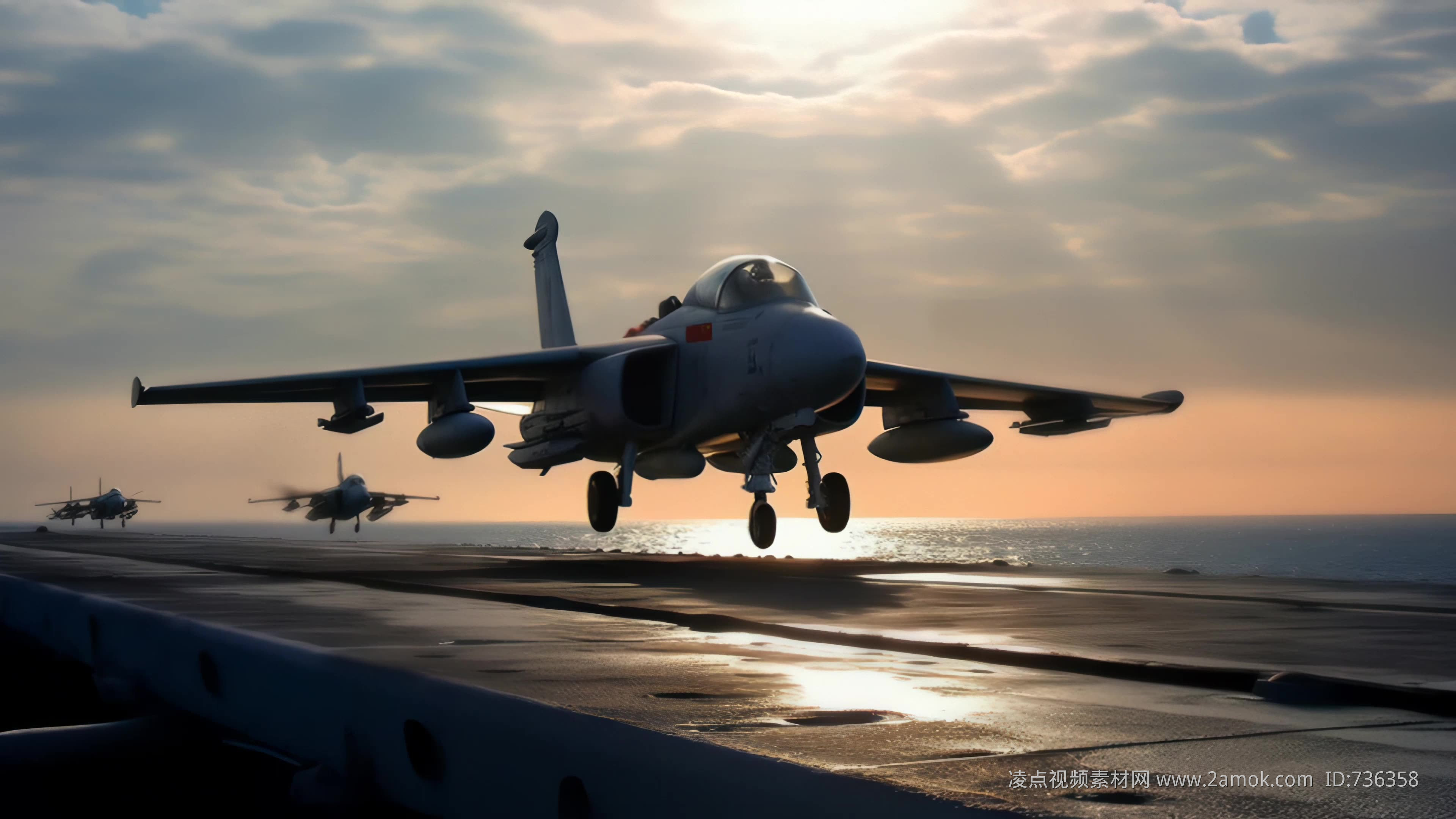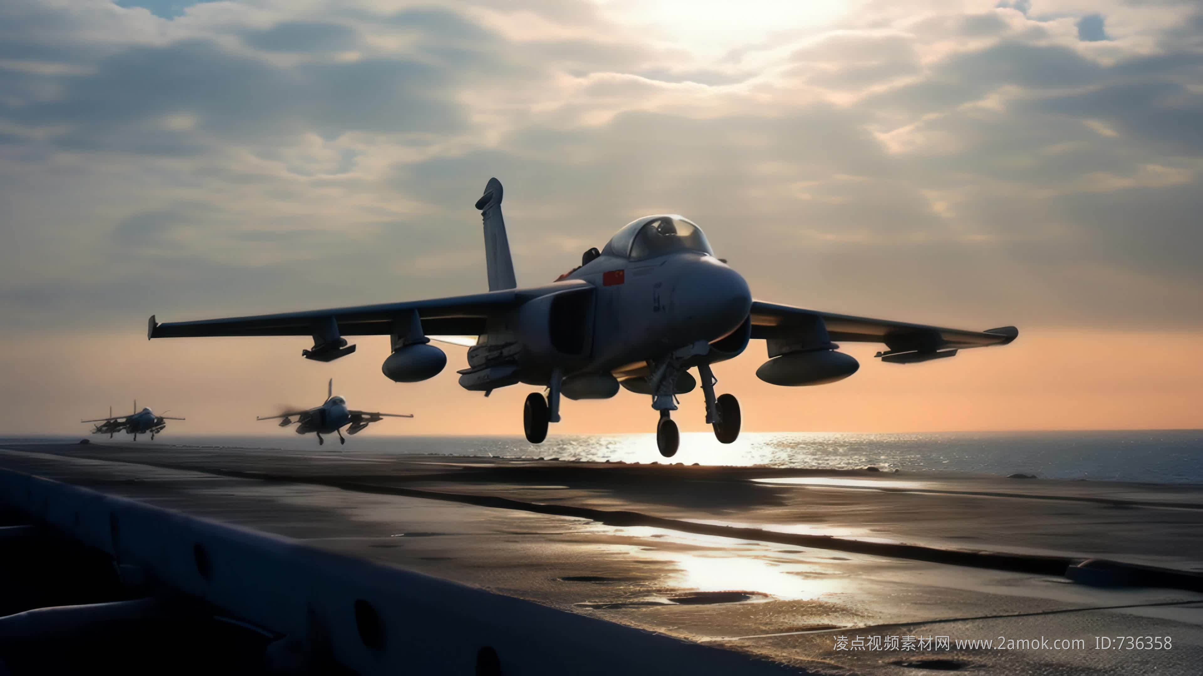 4k战斗机起飞降落夕阳唯美创意素材舞台背景